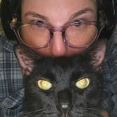 Jethro, though? He doesn’t get beat these days for peeing on the fridge. Even though it’s “bad.” He didn’t get to go outside before. He knows it’s the right place to go now, but sometimes he forgets. He jumps on the counters scavenging for food in memory of surviving only on what he could find in the sink. He isn’t motivated to steal by a sense of unfairness at all. He’s driven by food insecurity. Even with the bulk of the fear pressure is gone, the compulsion will probably always linger. We just try to keep the sink clean. He gets fed the right amount every day. And he doesn’t know what “wuss” means, so don’t come at me for negging him. Hex, the black cat who isn’t Adaleen, is my darling, easy-going stoner (catnip) boy who charms his way into having all his problems solved for him, so he isn’t really an intellectual, but he’s lovely anyway.